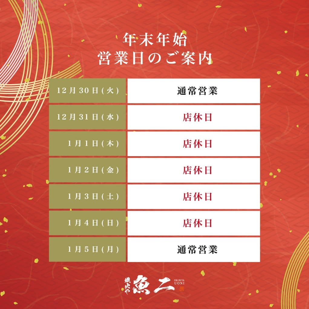 この度は、熾火や魚ニの年末年始の営業についてご案内申し上げます。